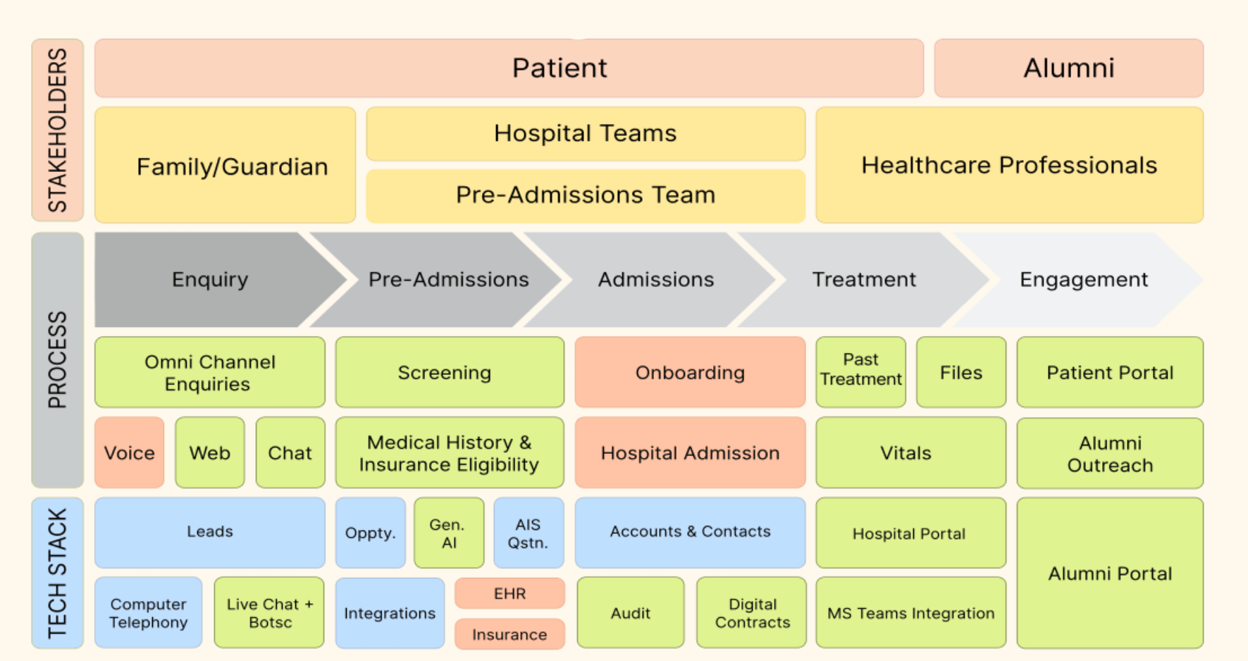 - Omni-channel enquiries: It efficiently handles inquiries through various channels, enabling smooth transitions for patients from email to hospital visits and phone calls without losing progress.